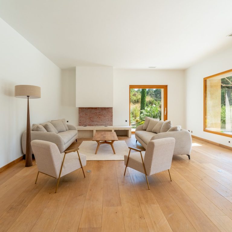 Les espaces intérieurs s’organisent avec rigueur autour de volumes clairs et ouverts, laissant la lumière structurer chaque pièce.
