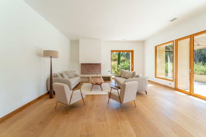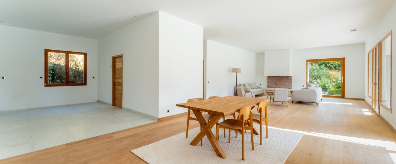 Les intérieurs se structurent autour de lignes claires et de volumes ouverts, où chaque espace trouve naturellement sa place.